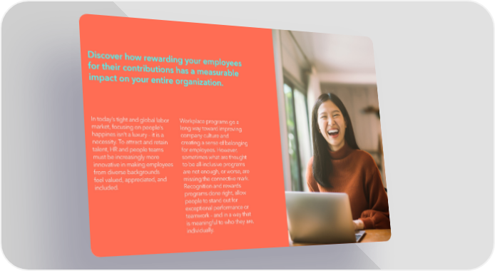 Discover how rewarding your employees for their contributions has a measurable impact on your entire organization. In today’s tight and global labor Workplace programs go a market, focusing on people’s long way toward improving happines isn’t a luxury – it is a company culture and necessity. To attract and retain creating a sense of belonging talent, HR and people teams for employees. However, must be increasingly more sometimes what are thought innovative in making employees to be all-inclusive programs from diverse backgrounds are not enough, or worse, are feel valued, appreciated, and missing the connective mark. included. Recognition and rewards programs done right, allow people to stand out for exceptional performance or teamwork – and in a way that is meaningful to who they are, individually.